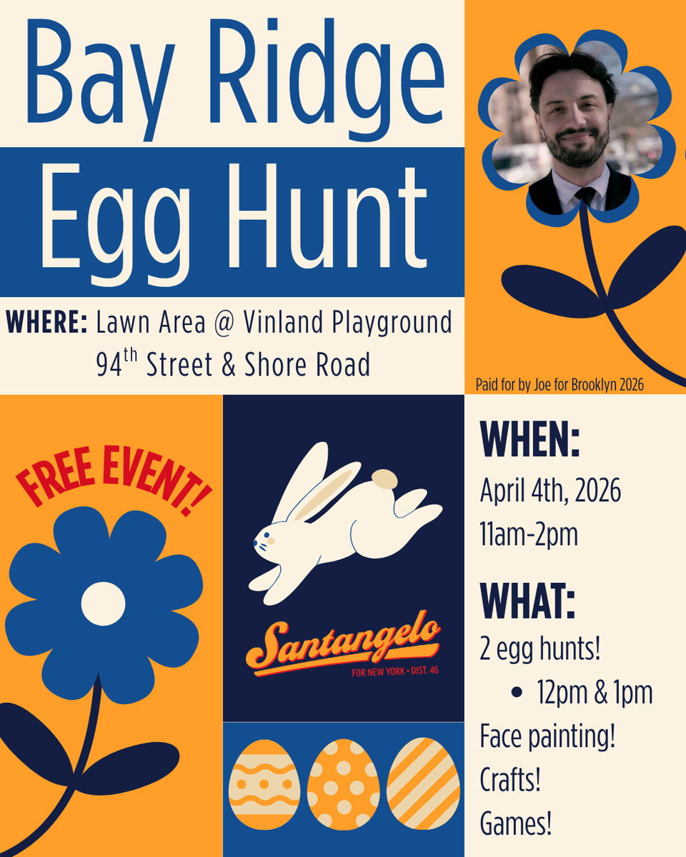 Join the Santangelo campaign for a free egg hunt! We will have face painting, crafts and games for the family! There will be an egg hunt at 12PM and 1PM.